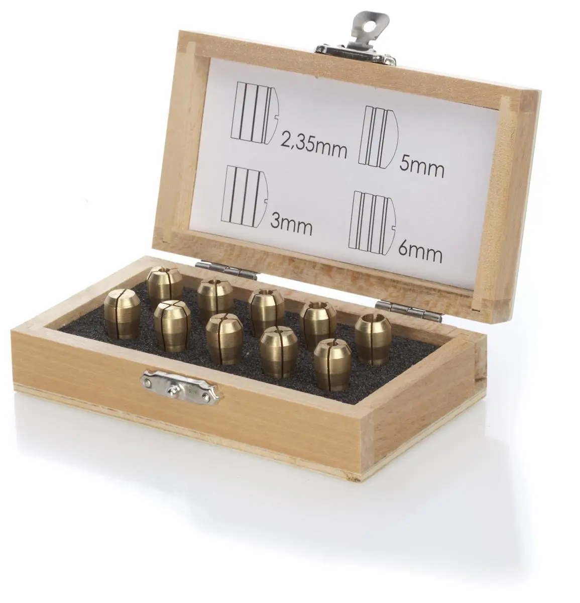 10 Präzisions Metallspannzangen in Holzbox